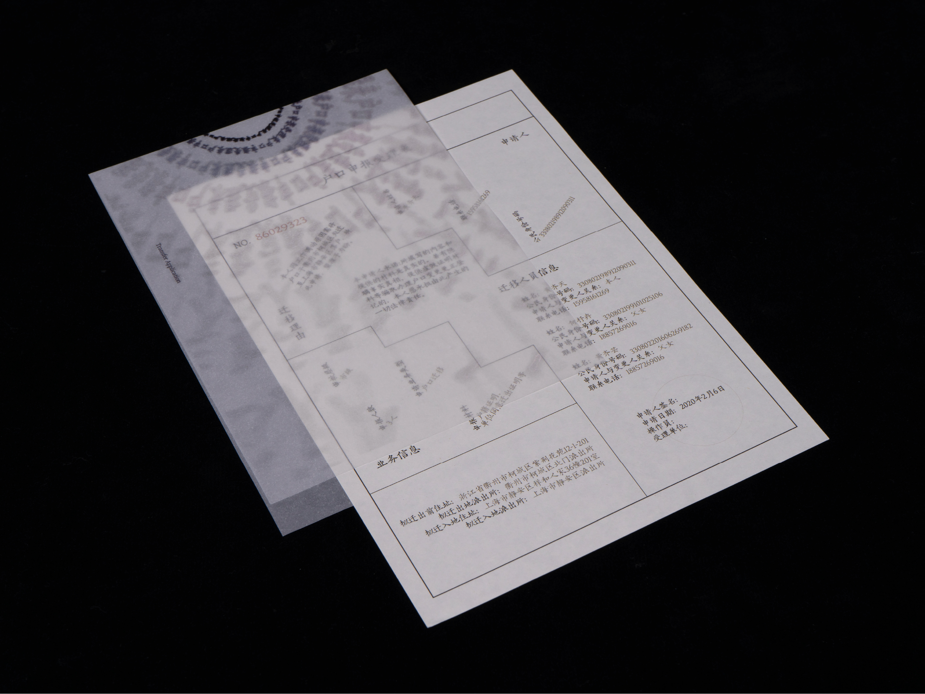 A redesign of the government forms for the application of household registration transfer, emphasizing absurdity and redundancy of the system with audience interactivity.